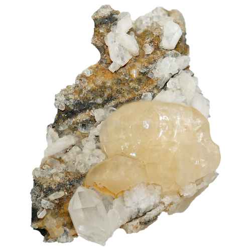 Große Bergkristall Gruppe mit Calcit vom Mont Blanc (14.7 cm x 9.1 cm) -